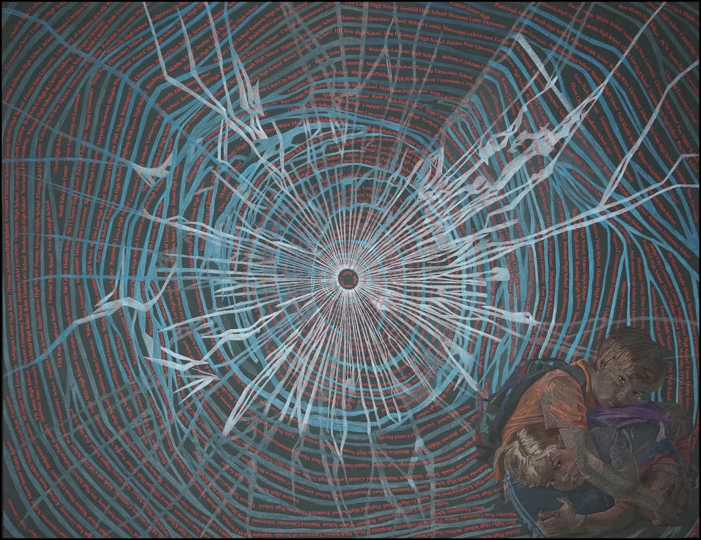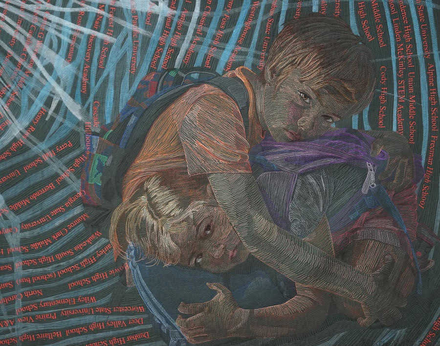 Using a distinctive style characterized by a dream-like use of color and imagery, her dye-painted scenes of multi-cultural life convey the untold stories of women, children, families, and the earth, and have been described as “easy to gaze at, but hard to forget.”